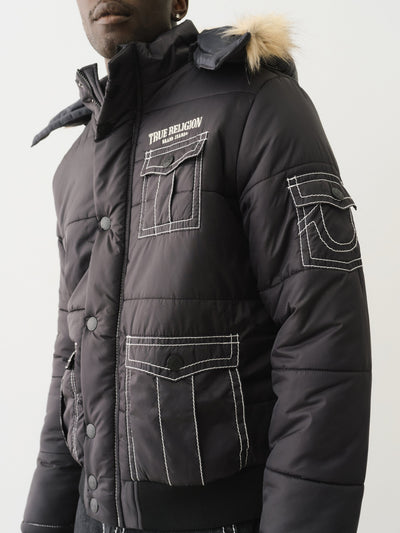 True Religion Big T Fur Hood Puffer Jacket Phantom
