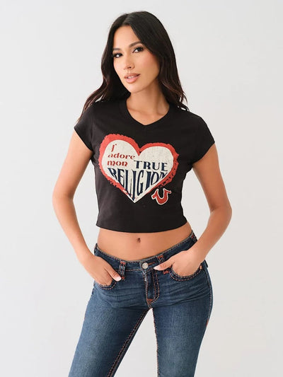 True Religion Crew Ladies J'Adore Mon Heart Baby Black