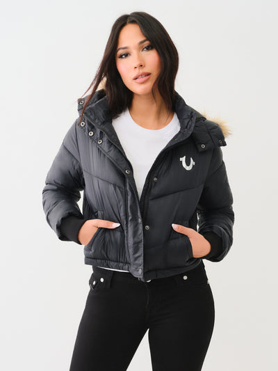 True Religion Fur Trim Puffer Jacket Sodalite Blue