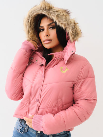 True Religion Fur Trim Puffer Jacket Mauvewood