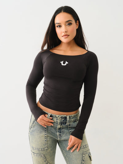 True Religion Hs Ls Boat Neck Fashion Tee Jet Black