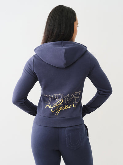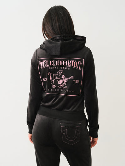 True Religion Velour Lurex Big T Zip Hoodie Jet Black