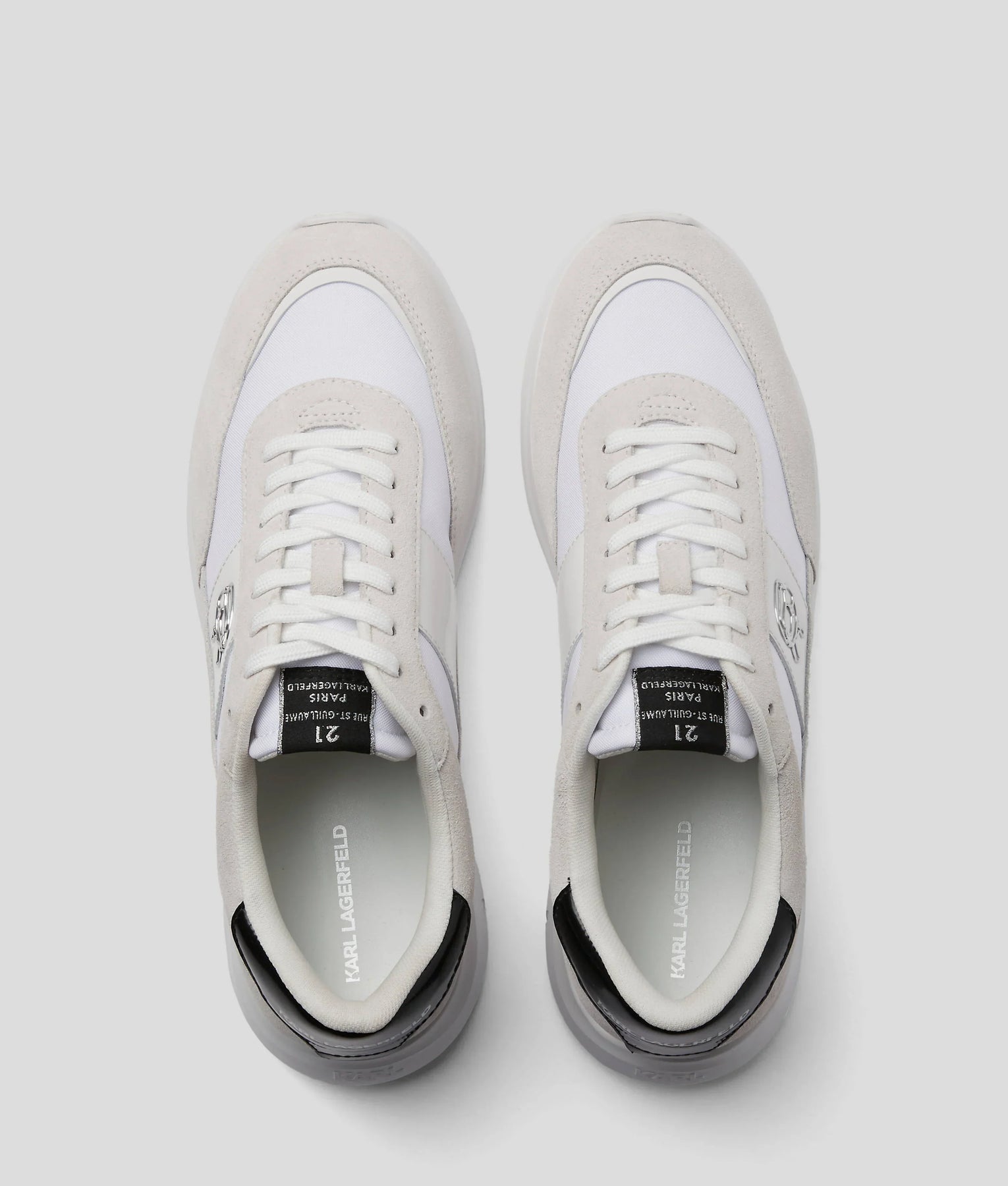 Boldly reimagined, these sneakers blend mixed materials for a unique look. The lace-up design ensures a secure fit, while the contrasting heel counter showcases the KARL LAGERFELD logo. A playful touch is added with the IKON Karl artwork at the side.