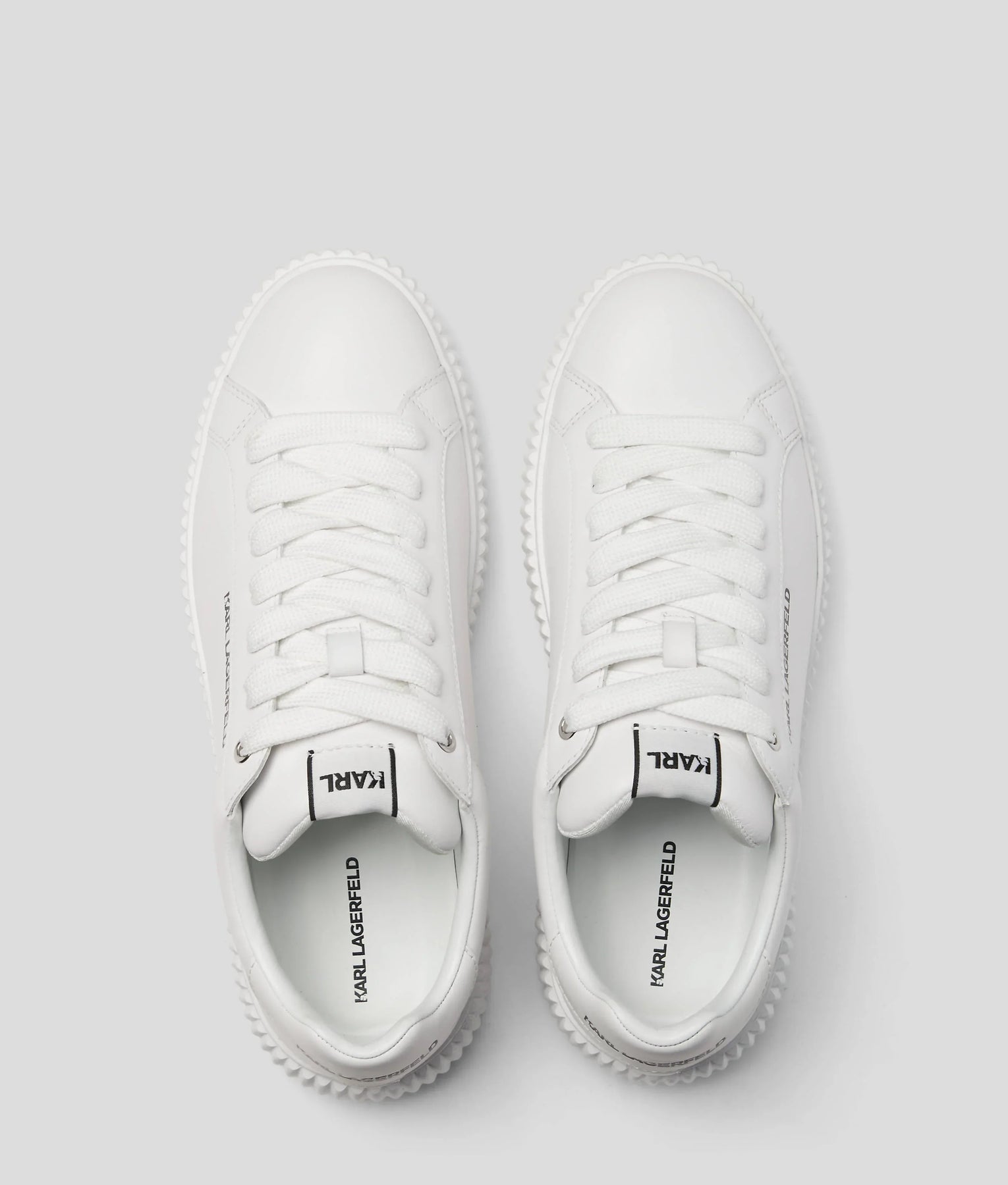 These lace-up sneakers effortlessly combine style and versatility. The tonal heel counter showcases the iconic KARL LAGERFELD logo, while a contrasting logo at the side adds a signature touch. Perfect for pairing with jeans or smart pants for a contemporary look.