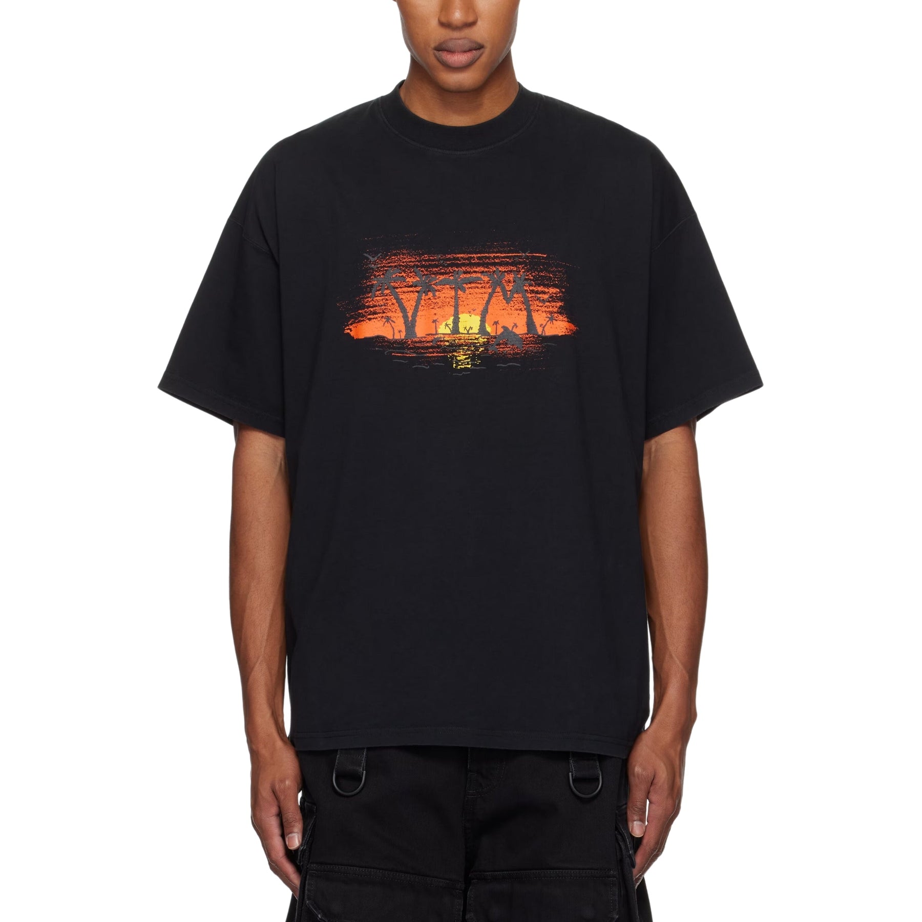 Introducing the Vetements T-Shirt Palm Tree Black! Elevate your style with this bold and unique t-shirt. The iconic palm tree design will make you stand out while the high-quality material guarantees comfort. Get yours now and add a touch of edge to your wardrobe!