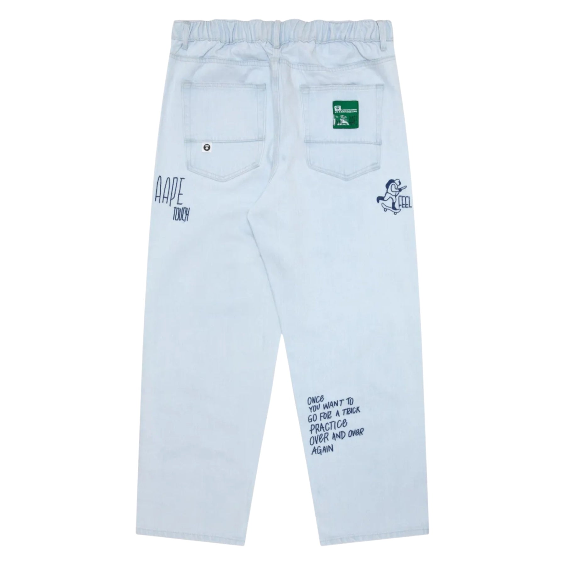 Step up your style game with these Aape Jeans in a trendy blue and white color scheme. The slogan "Touch The Ground To Jump" adds a unique touch to your outfit, while the comfortable fit ensures you can conquer anything that comes your way. Make a statement and stand out from the crowd!
