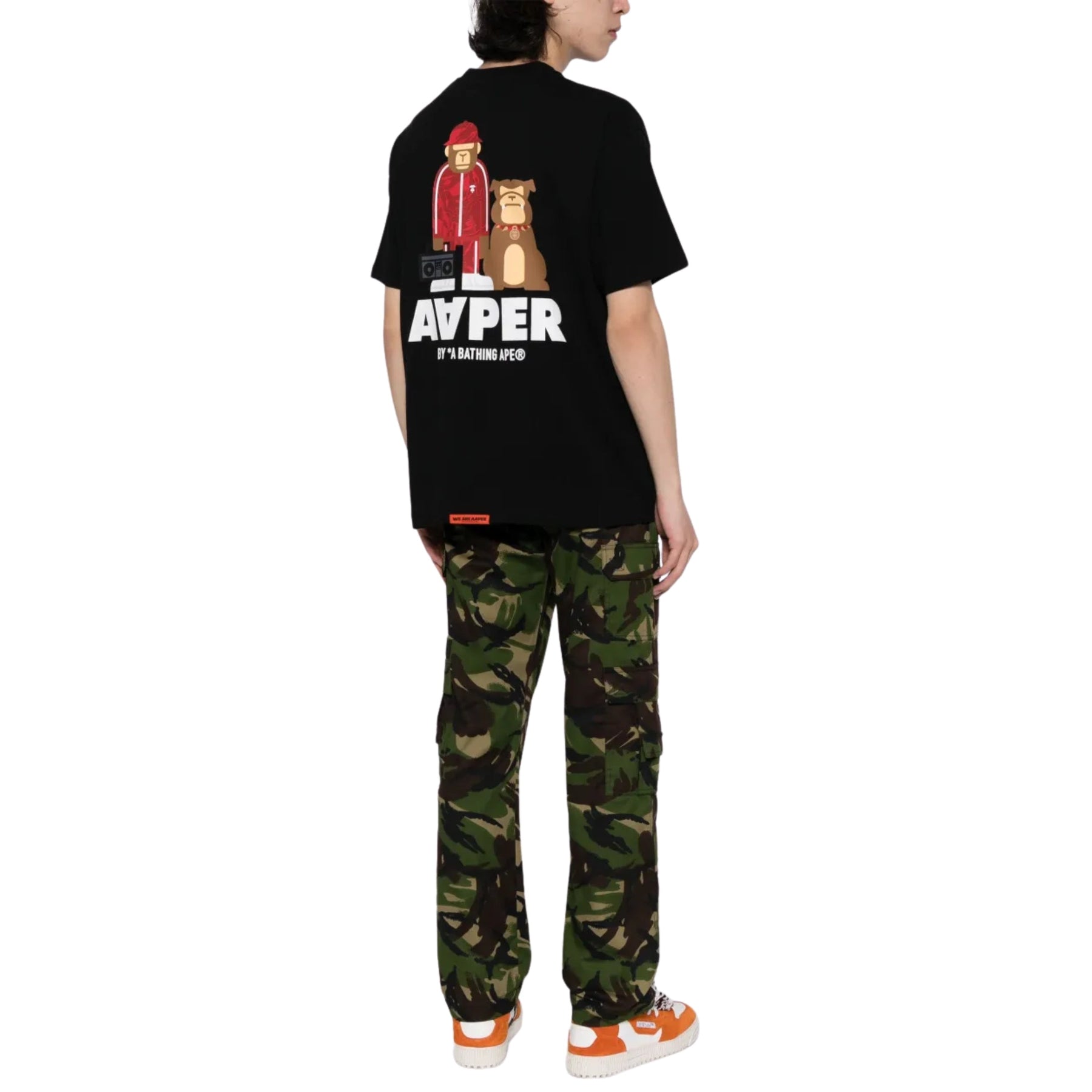 Embrace your wild side with our Aape T-Shirt Bravo Ape Black. Made with high-quality fabric, this t-shirt showcases a fierce design that will make you stand out in any crowd. Express your unique style and feel confident in this must-have addition to your wardrobe. Unleash your inner ape!