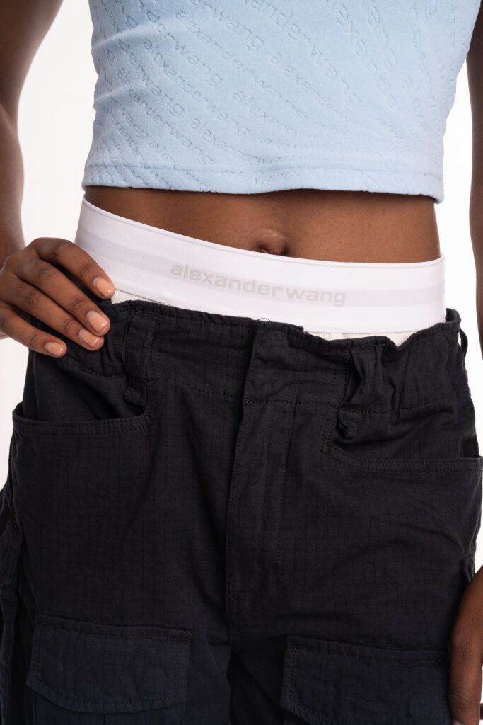 These asphalt cargo pants feature a pre-styled brief waistband with a logo elastic. The multiple pockets throughout enhance the utilitarian charm of this relaxed-fit design.
