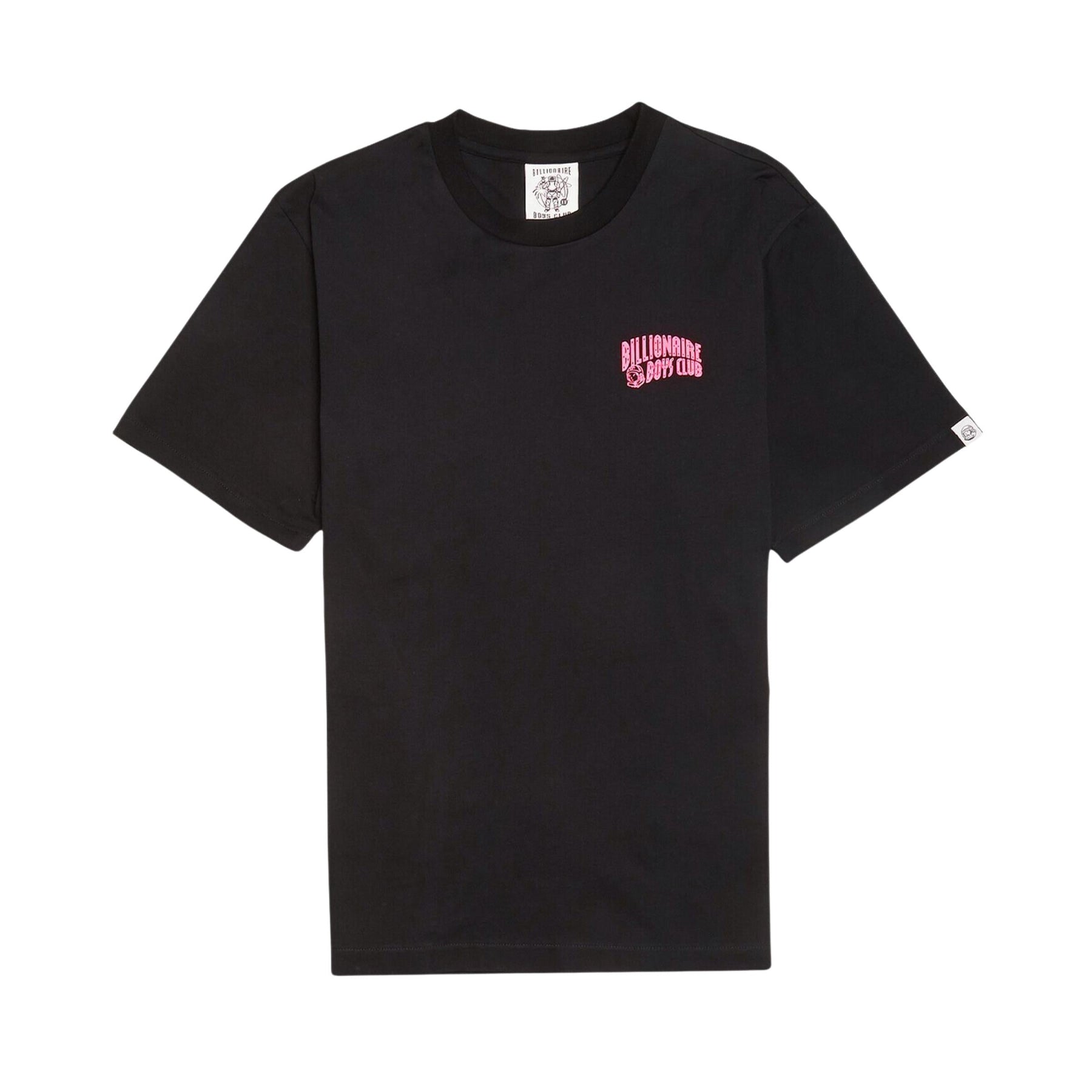 This Billionaire Boys Club t-shirt features a small arch logo design in black and pink. Made with high-quality materials, this shirt is perfect for those who want to make a statement and show off their style. Elevate your wardrobe with this unique and bold t-shirt today!