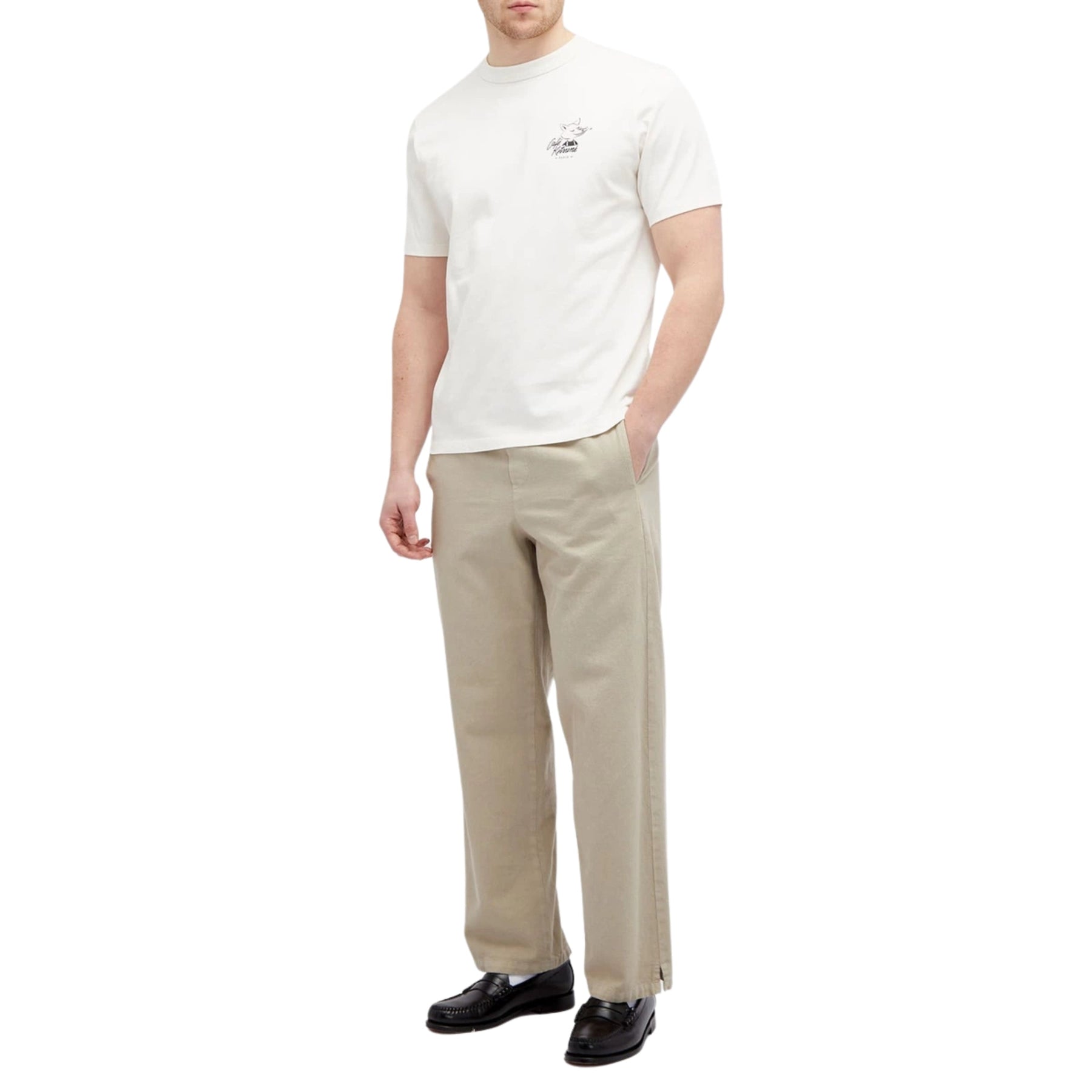 Elevate your style with a Cafe Kitsune T-Shirt featuring a serene fox design and the phrase "Relax Tapioca." Whether you're a fan of the popular Cafe Kitsune brand or simply looking for a unique statement piece, this t-shirt is sure to add a touch of charm and whimsy to any outfit. Stay stylish and comfortable with this must-have tee.