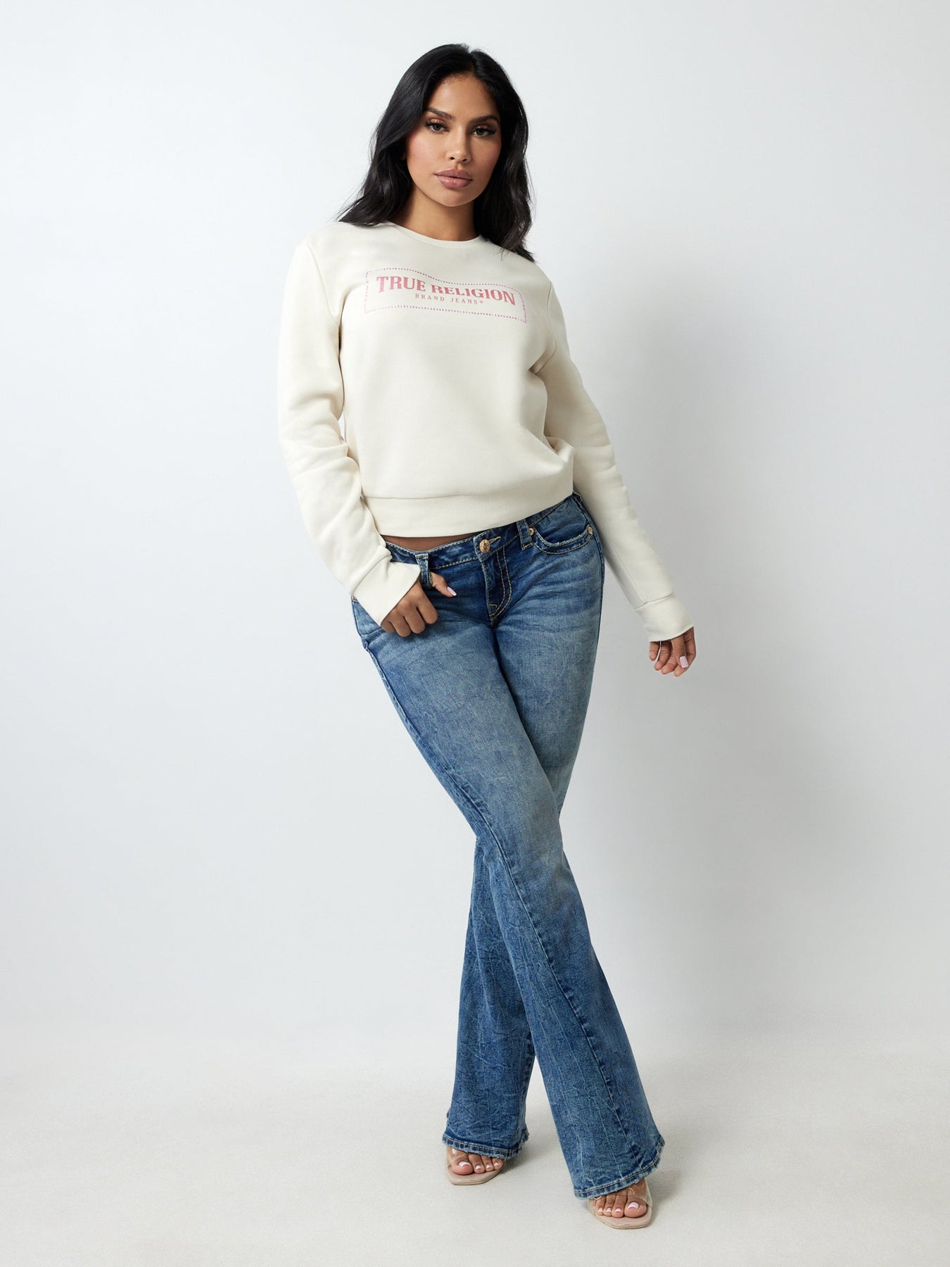 Elevate your wardrobe with the True Religion Crystal Logo Classic Crew Neck in Winter White. This premium sweatshirt blends timeless style with subtle sparkle, featuring the iconic logo adorned in elegant crystals. Crafted for comfort and warmth, it’s perfect for colder days while keeping you effortlessly stylish. Make a statement that combines luxury and everyday wear with this versatile essential.