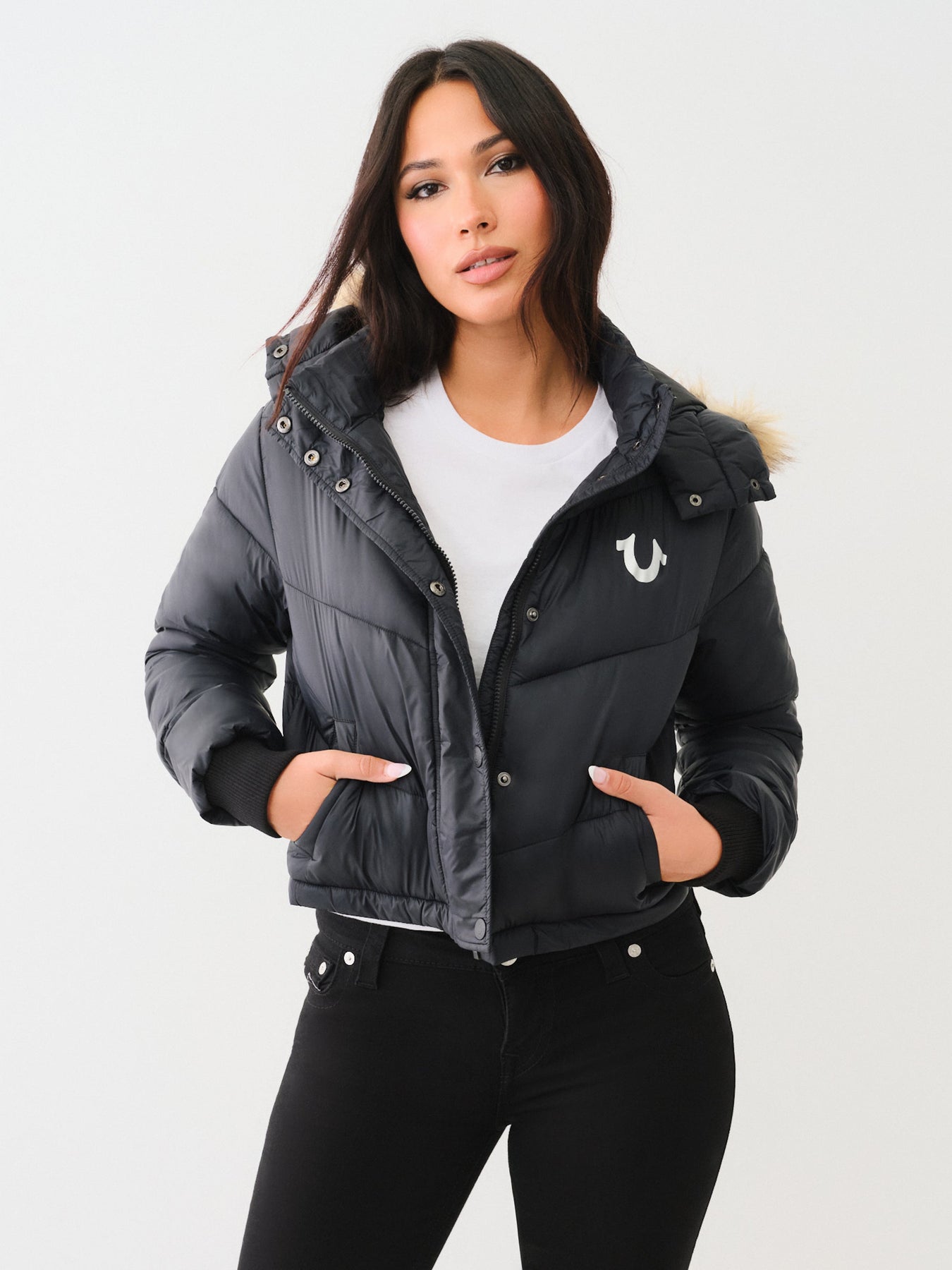 Stay warm and stylish with the True Religion Fur Trim Puffer Jacket in Jet Black. Designed to provide exceptional insulation, this jacket features a plush fur-trimmed hood that adds both luxury and extra protection against chilly winds. Its sleek black finish offers a versatile look that effortlessly complements any outfit, making it your go-to choice for cold-weather days. Durable and comfortable, this jacket combines fashion and function for all your winter adventures.