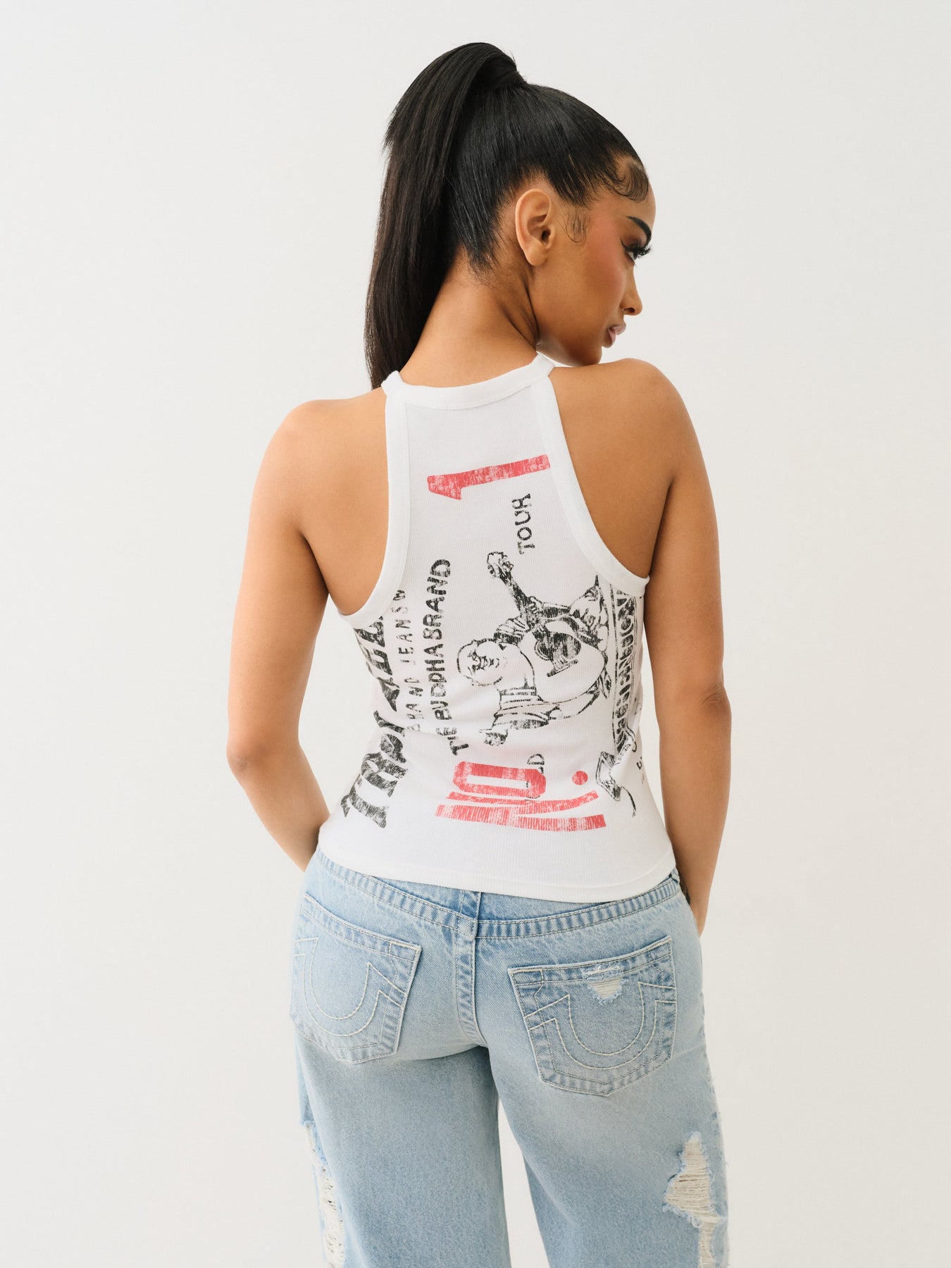 Elevate your style with the True Religion OG SRS Halter Tank in Optic White. Crafted for a flawless fit, this tank offers a sleek and modern silhouette that highlights your shape. Its crisp white hue provides versatile layering options for any season or occasion. Experience comfortable wear without compromising on fashion—perfect for pairing with jeans or skirts to create a chic, effortless look. Make a statement with this timeless wardrobe essential.