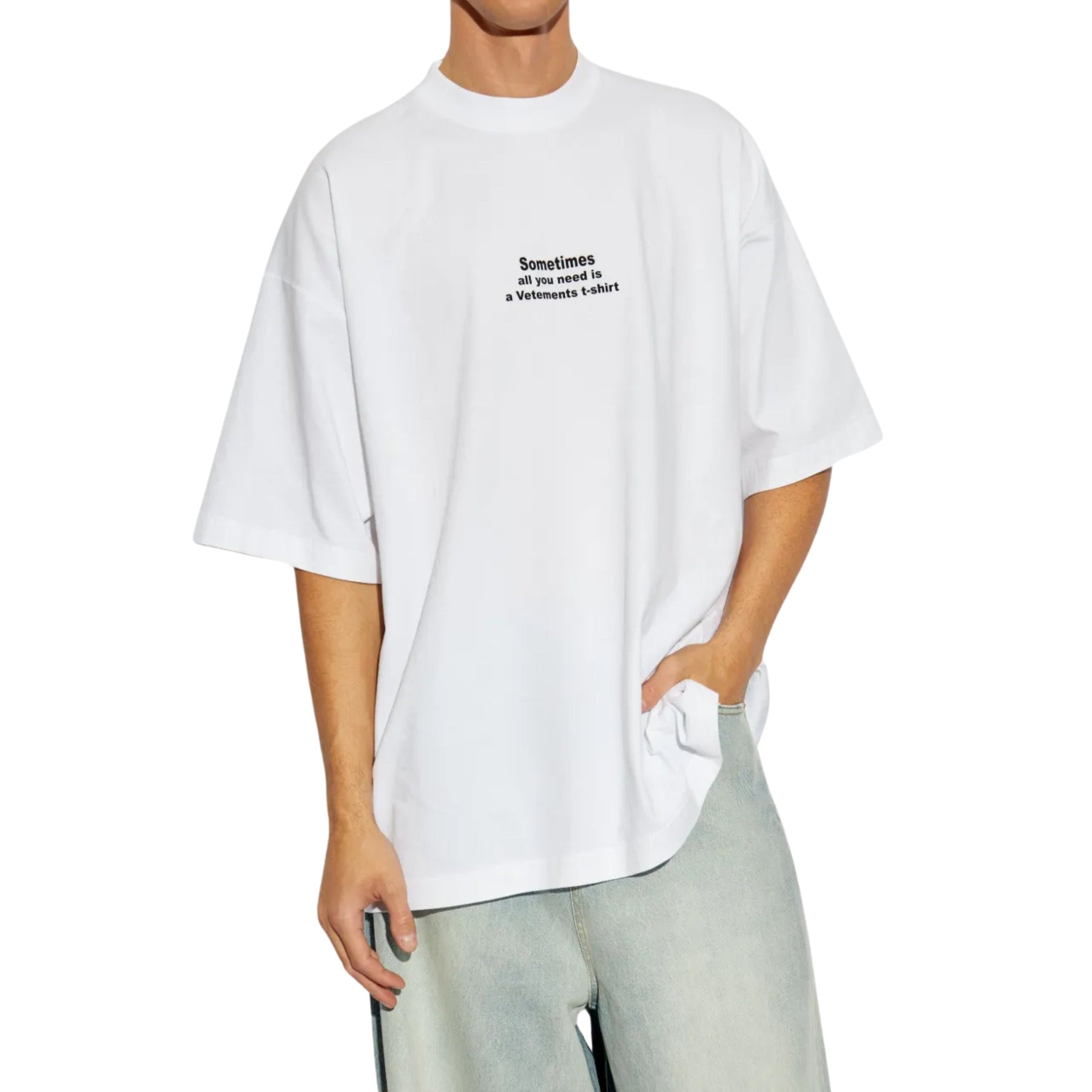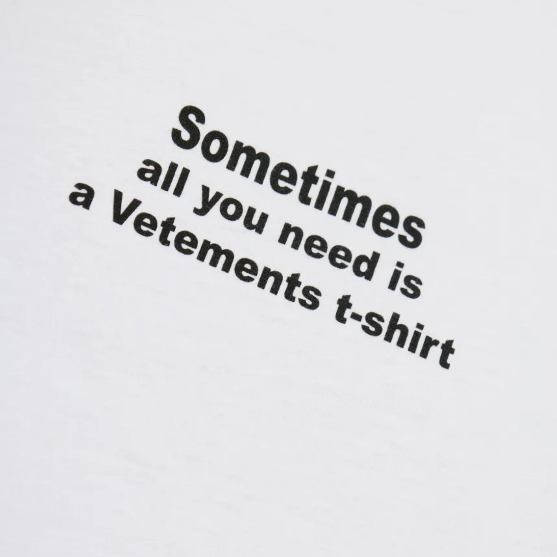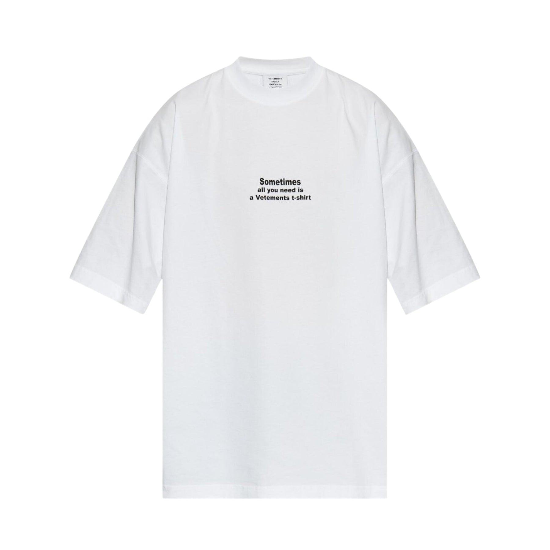 Introducing the Vetements T-Shirt All You Need Oversized White, the perfect addition to your wardrobe! Made with high-quality materials, this t-shirt offers a comfortable and stylish oversized fit. The all-white design is versatile and can be dressed up or down. Show off your unique style with this must-have piece!
